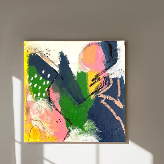 Original Abstract Mixed Media Painting, Botanical Echo, 20 x 20 cm #01