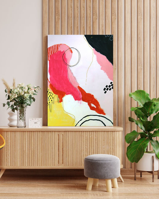 Original Abstract Painting, Bold Botanicals, 30 x 40 cm