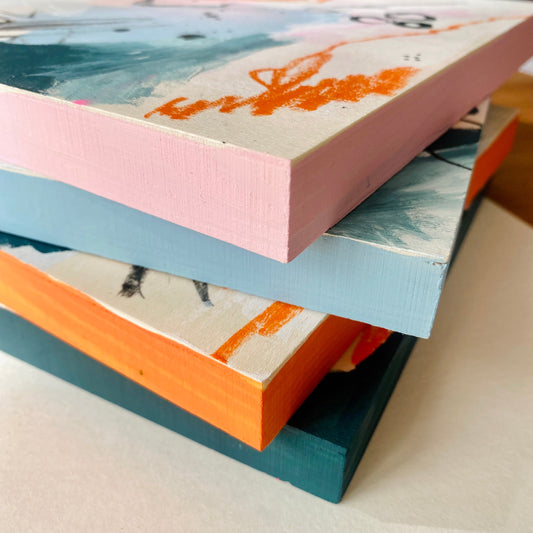 Drift & Spark – Set of 4 Original Abstract Paintings on Wood