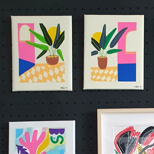 Set of 2 Original Abstract Paintings, 15 x 15 cm