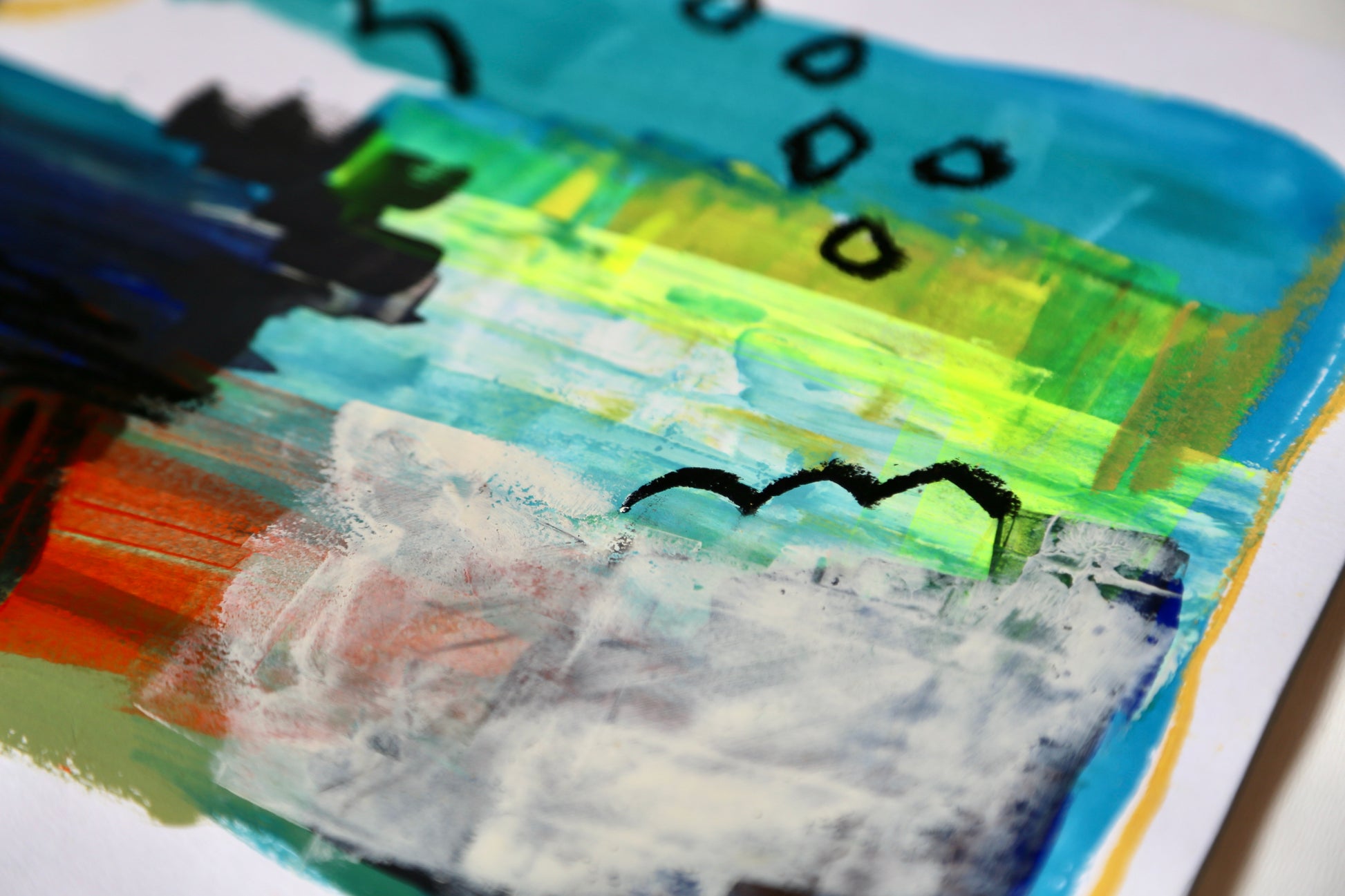 Blue Horizon is a vivid study in balance — where bold brushstrokes meet open space and colour becomes emotion.