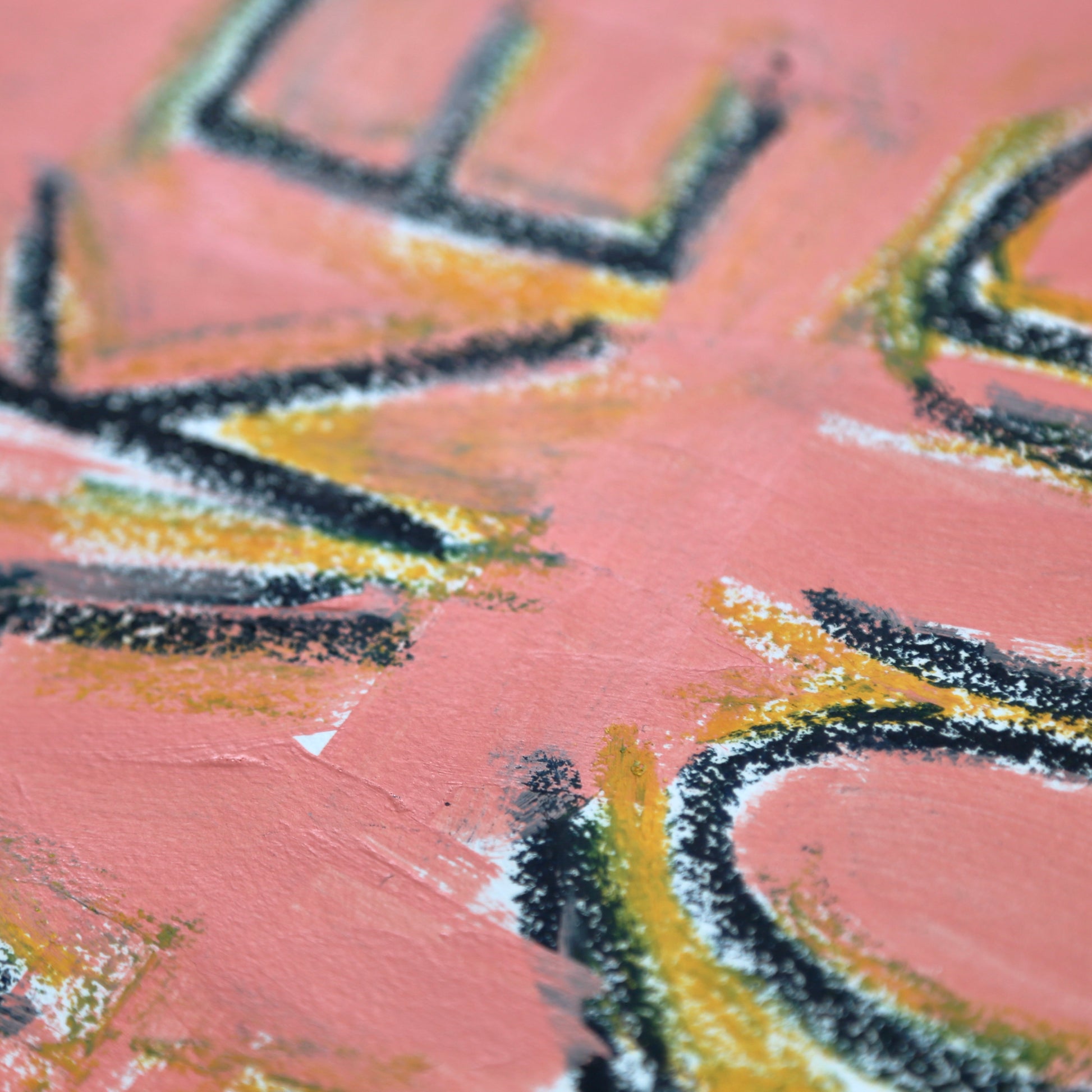 Acrylic paint meets oil stick in a raw, painterly balance that celebrates slowing down and staying present.