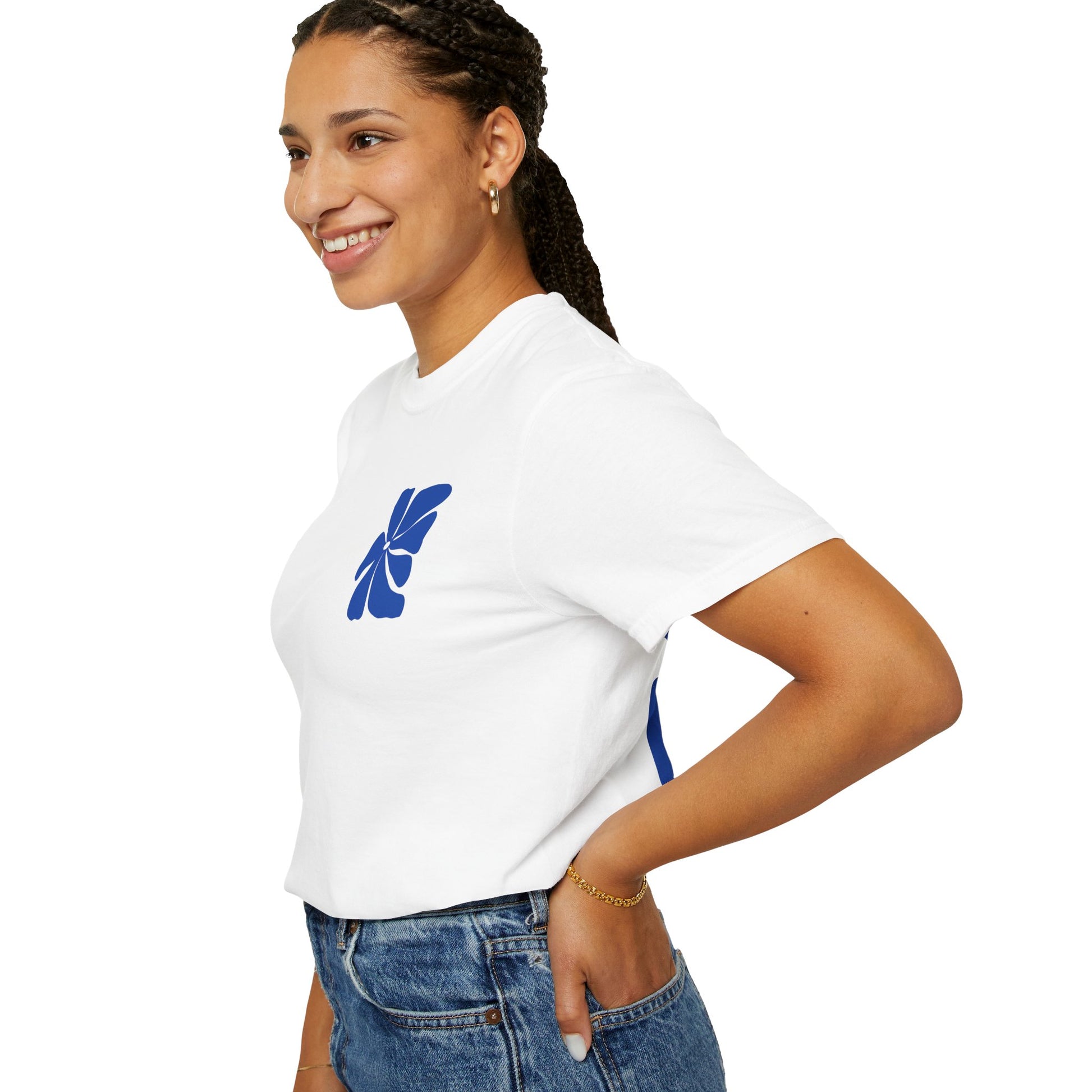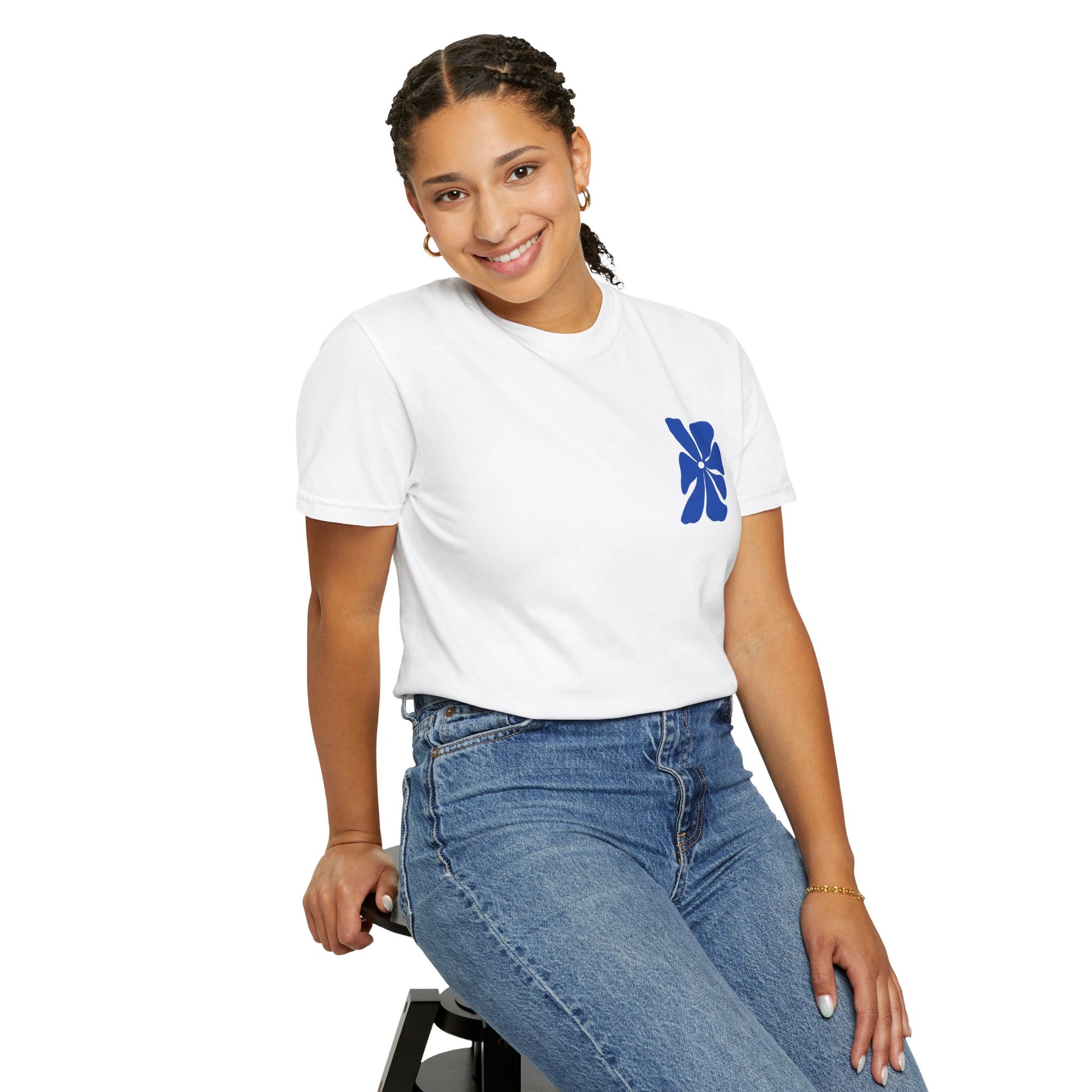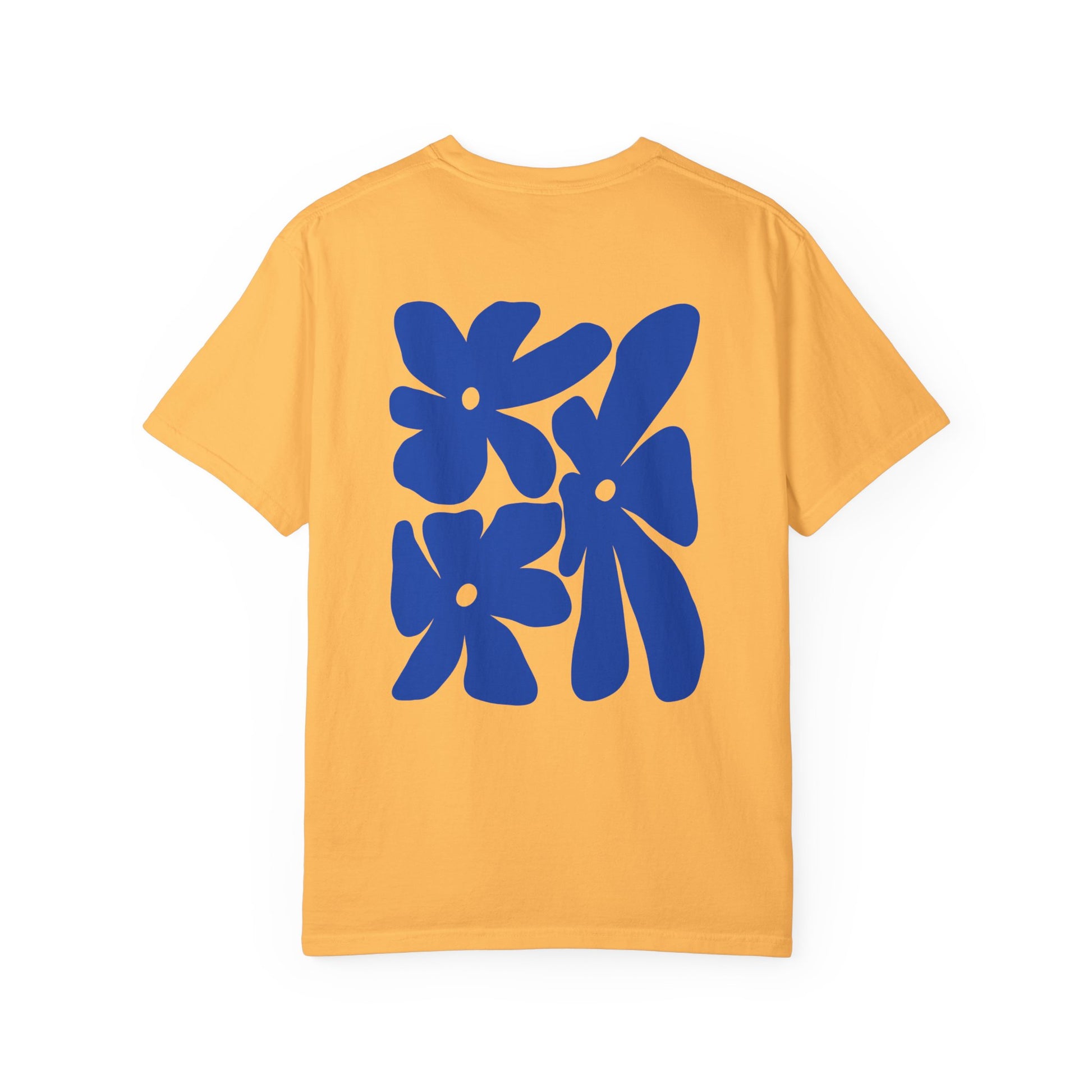 This T-shirt turns original artwork into an everyday essential. Designed as wearable art, it features a subtle front detail and a bold abstract flower print across the back — playful, graphic, and confident without trying too hard.